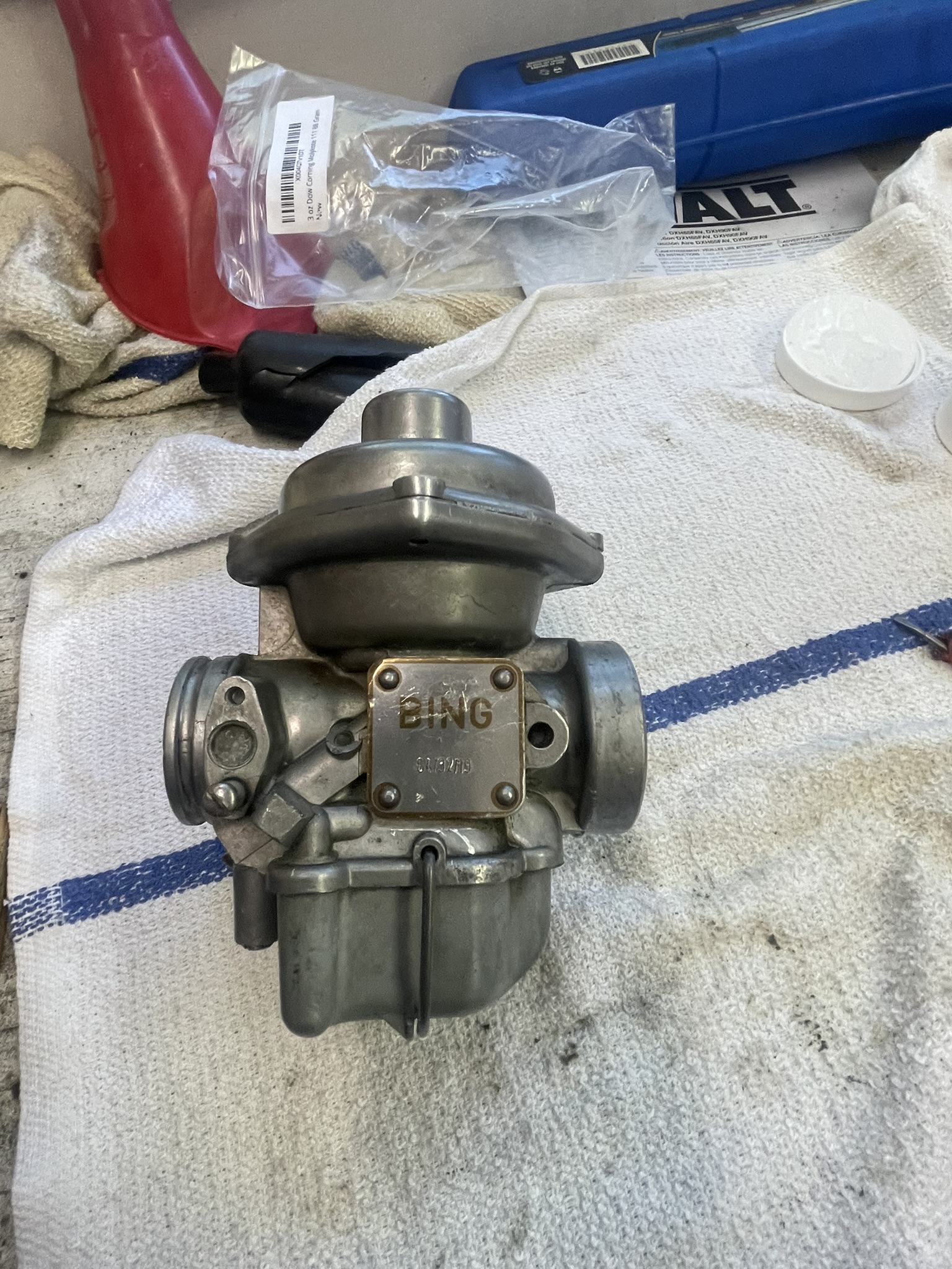 Bing Carb Rebuild! These were the first carbs I have ever rebuilt and were absolutely delightful to work on. They were pretty clean overall but the O-rings were hard and disintegrating, diaphragm was ok but showing its age along with a few other easy parts to replace.